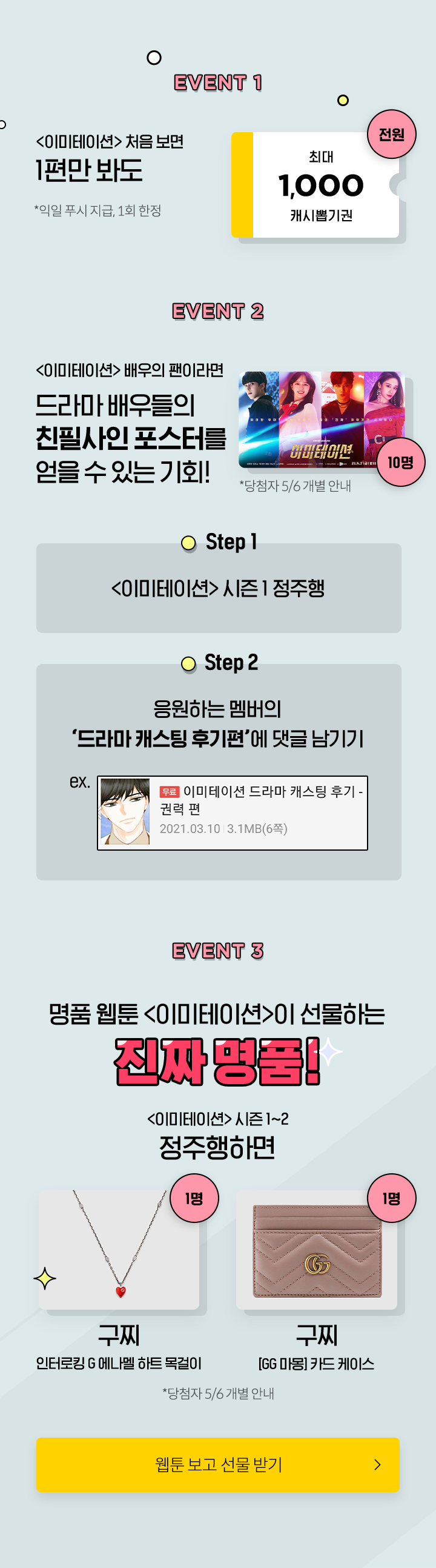 <이미테이션> 처음이면 1편만 봐도 전원 최대 1,000캐시 뽑기권 (익일 푸시 지급, 1회 한정)