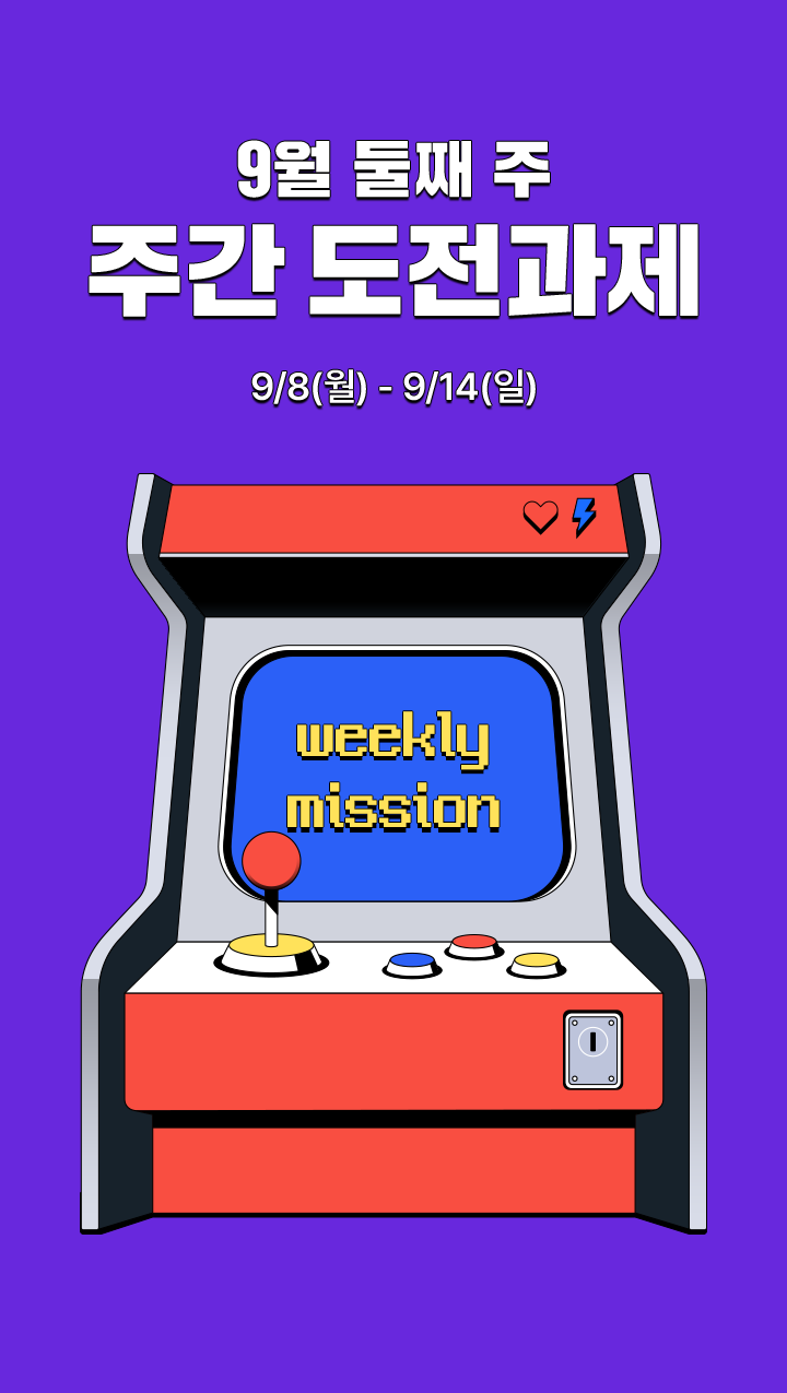 - '9-2 주간 도전과제'는 9/8(월) ~ 9/14(일) 7일간 진행됩니다.