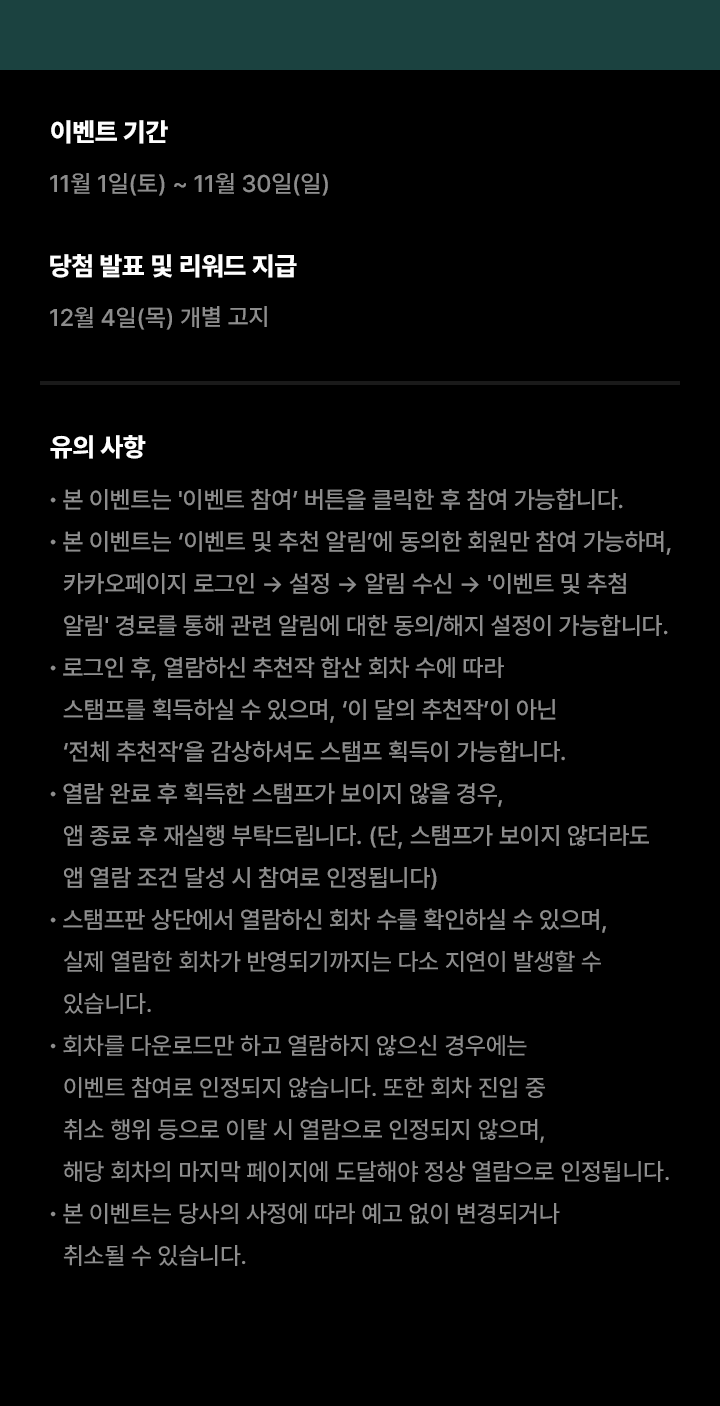 - λ³Έ μ΄λ²€νΈλ 'μ΄λ²€νΈ λ° μν μΆμ² μλ¦Ό' μ λμν νμλ§ μ°Έμ¬κ° κ°λ₯ν©λλ€. (μ€μ λ°©λ² : λ보기 > μ€μ > μλ¦Ό μμ ON > μ΄λ²€νΈ λ° μΆμ² μλ¦Ό ON)