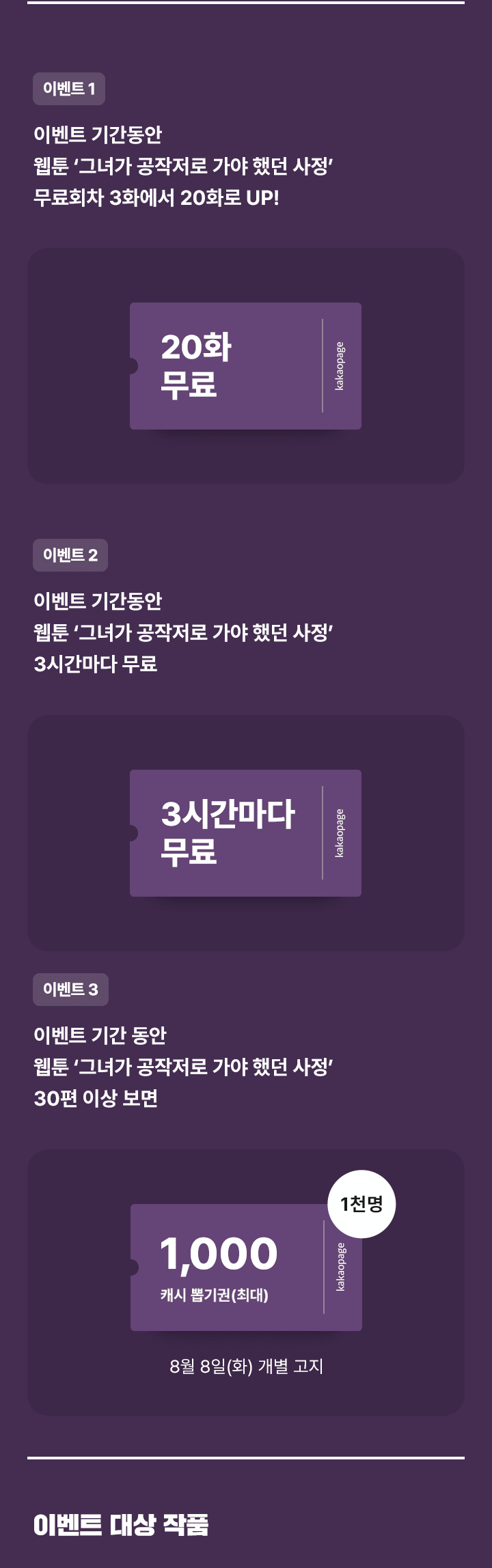 - - 이벤트 종료 후 3다무 종료 일정은 작품별 개별 공지를 통해 확인하실 수 있습니다.
