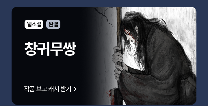 - 웹소설 <창귀무쌍> 유료로 1화 감상하면 최대 1,000캐시 뽑기권이 즉시 지급됩니다.