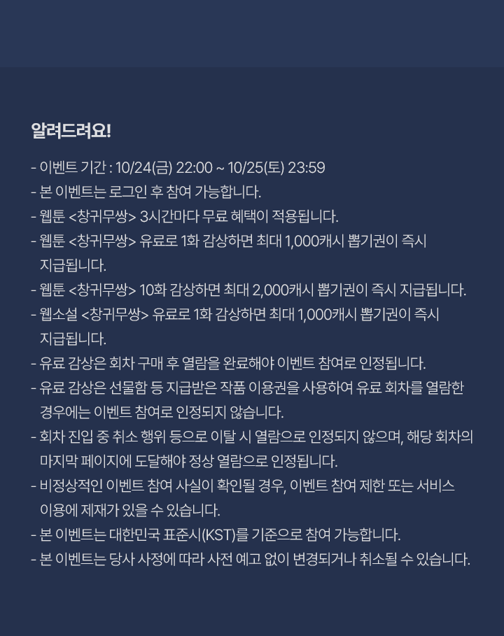 - 이벤트 기간 : 10/24(금) 22:00 ~ 10/25(토) 23:59