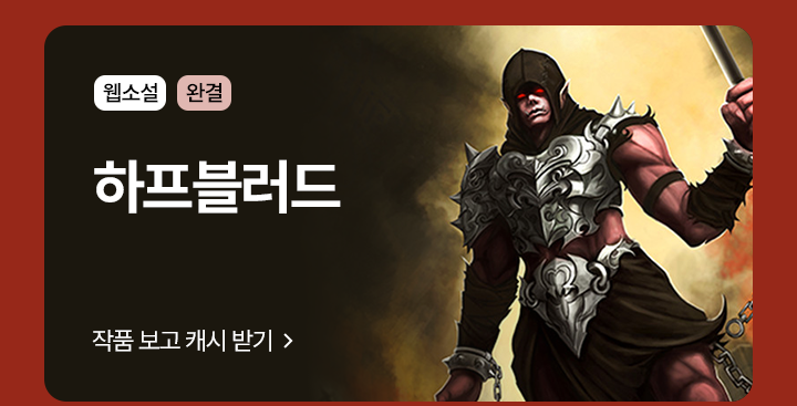 • - 웹소설 <하프블러드> 유료로 1화 감상하면 최대 1,000캐시 뽑기권이 즉시 지급됩니다.