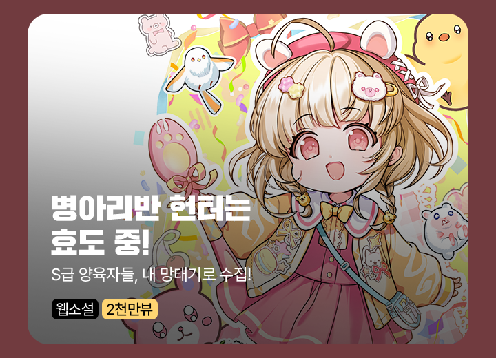 - 이벤트 기간 한정 웹소설 <병아리반 헌터는 효도 중!> 1화 ~ 30화를 무료로 감상할 수 있습니다.