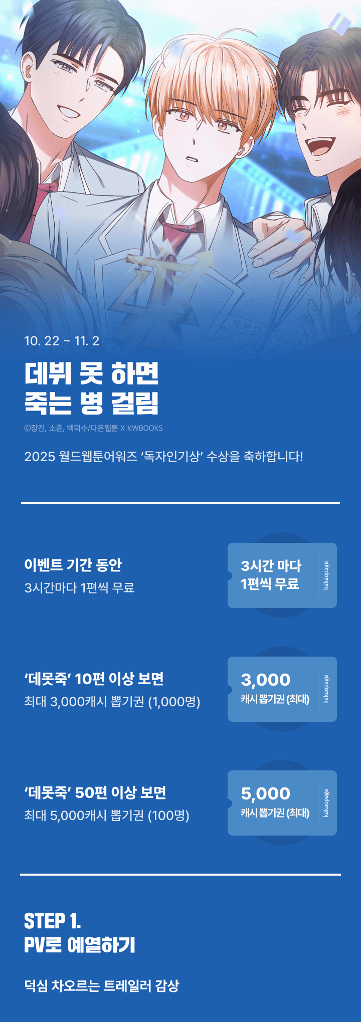 기다리면 무료 이용권 (<데못죽> 웹툰을 3시간 마다 무료로!)