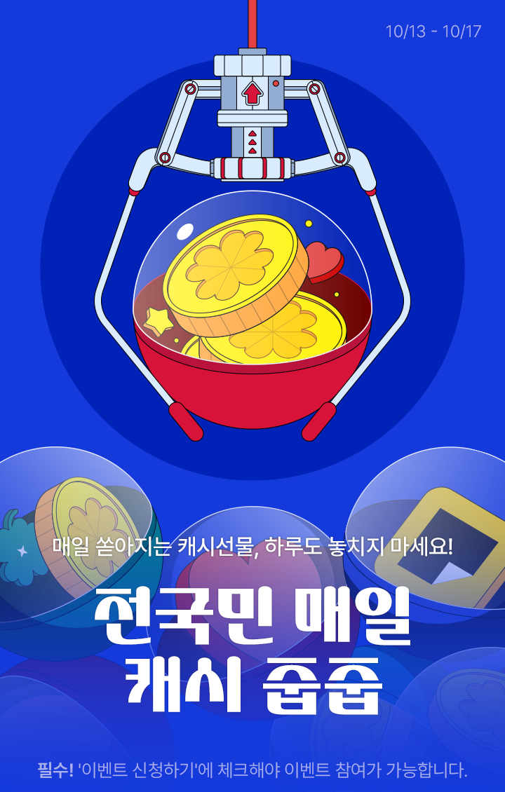 아래 참여하기 버튼을 눌러야 이벤트 참여가 가능하며 캐시선물을 받을 수 있어요!