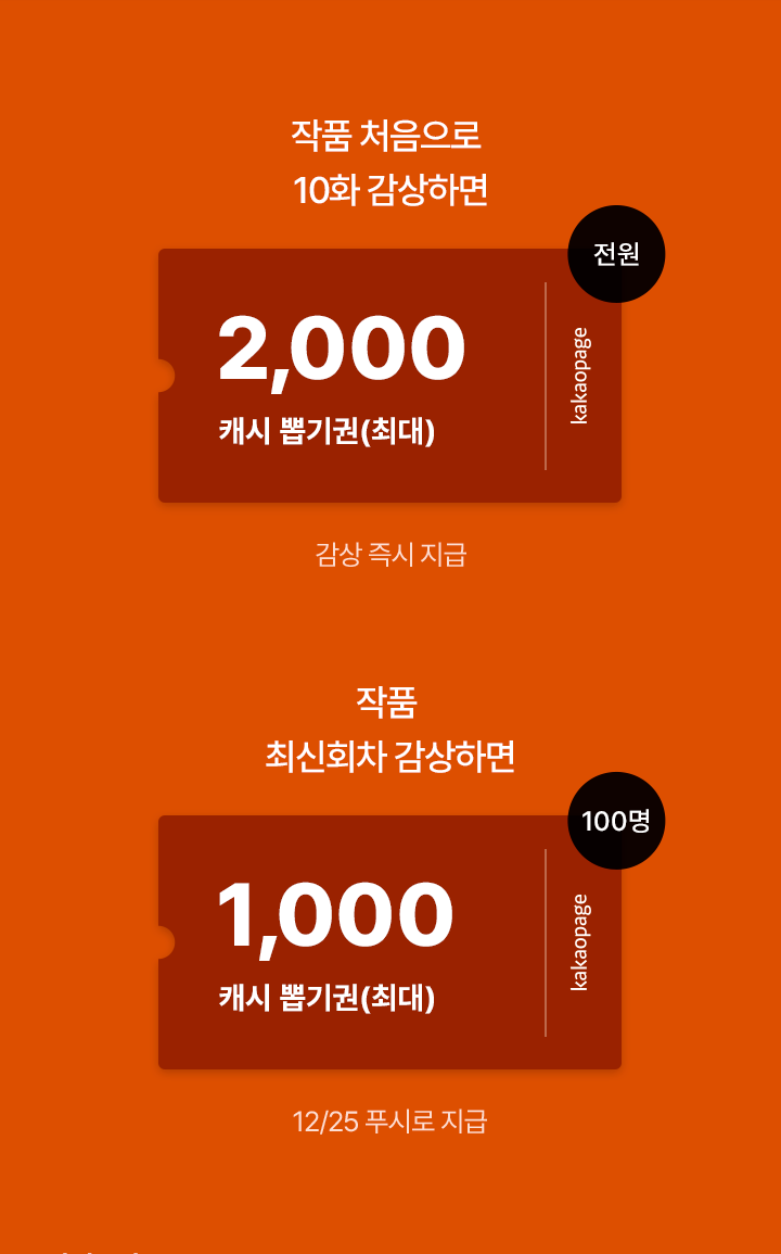 - 기존 감상한 작품을 이벤트 기간 내 재구매, 감상할 경우에도 이벤트 참여가 가능합니다.