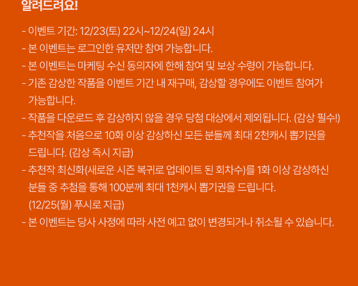 - 작품을 다운로드 후 감상하지 않을 경우 당첨 대상에서 제외됩니다. (감상 필수!)