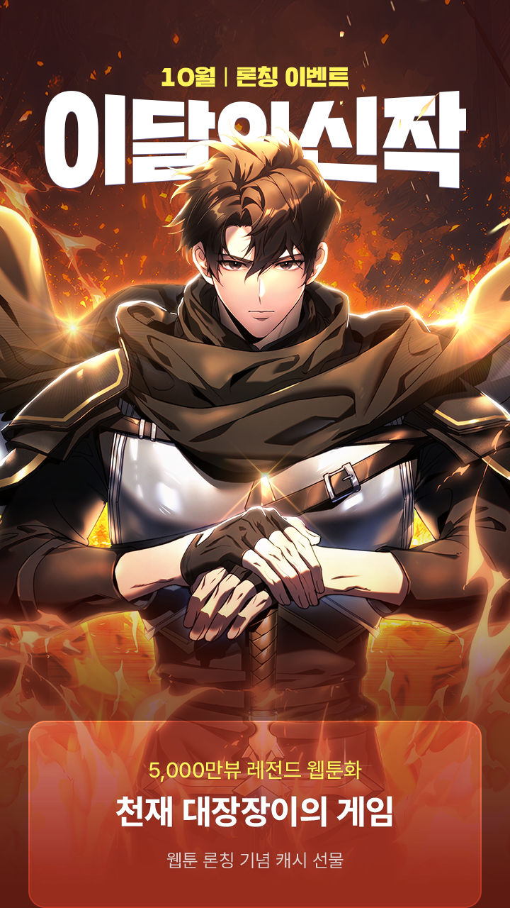 5,000만뷰 레전드 웹툰화 <천재 대장장이의 게임> 웹툰 론칭 기념 캐시 선물