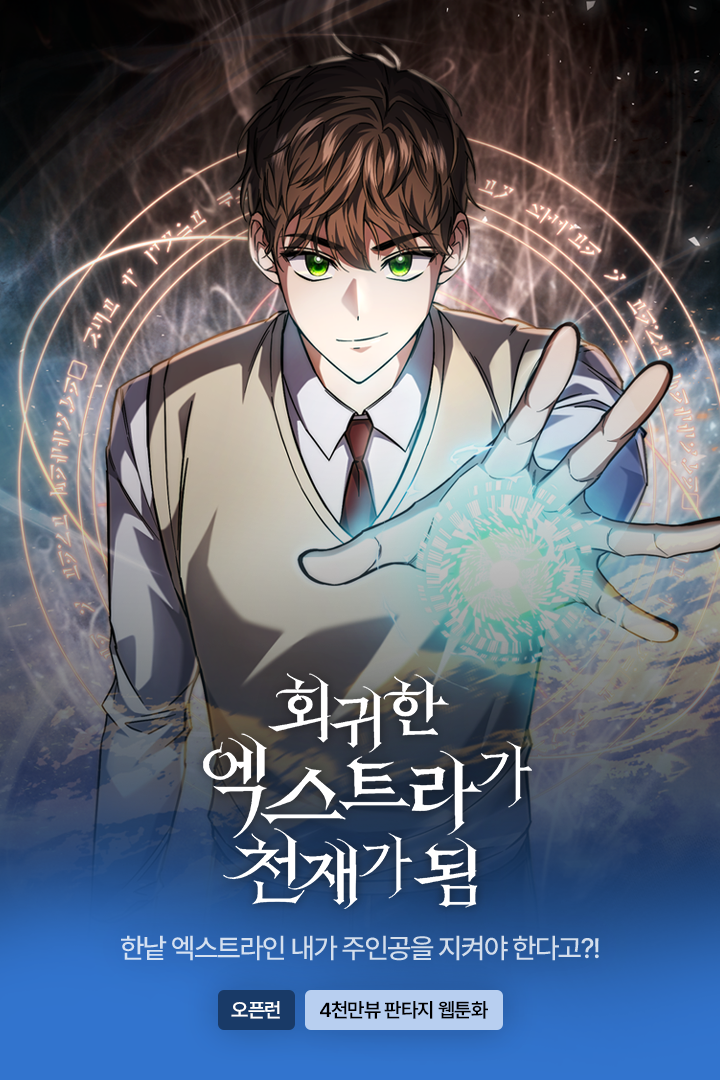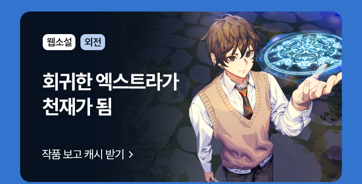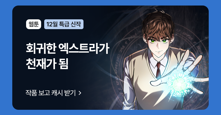- 웹툰 <회귀한 엑스트라가 천재가 됨> 10화 감상하면 최대 2,000캐시 뽑기권이 즉시 지급됩니다.