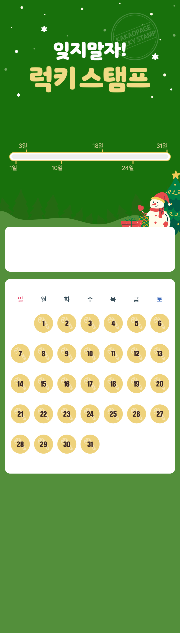 작품을 1일 1화 이상 감상 시 출석 인정되며, 스탬프는 1일 1개 획득 가능합니다. (매일 참여 가능)