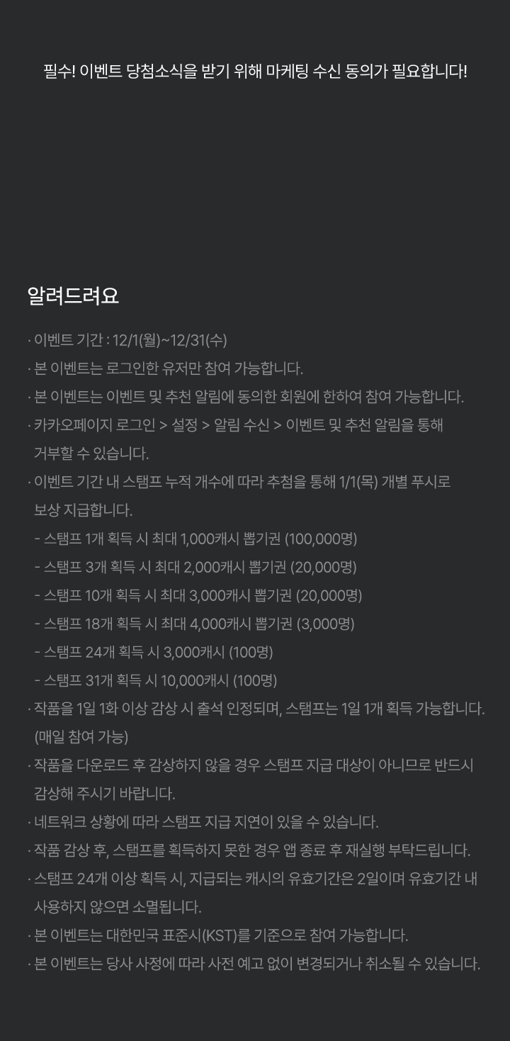 이벤트 소식 및 작품 추천 알림을 받습니다