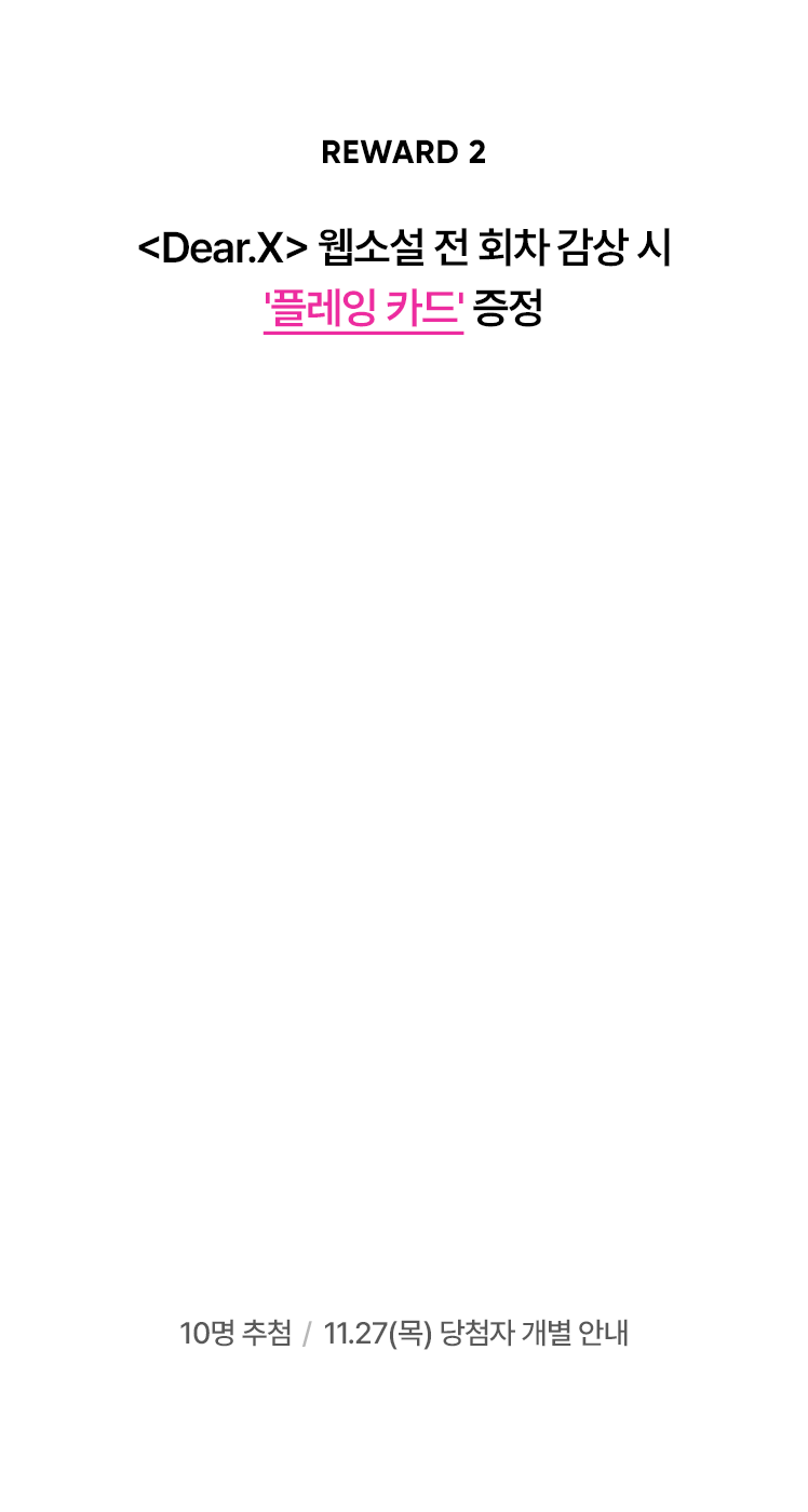 <Dear.X> 웹소설 전 회차 감상 시 '플레잉 카드' 증정 (10명 추첨 / 11.27(목) 당첨자 개별 안내)