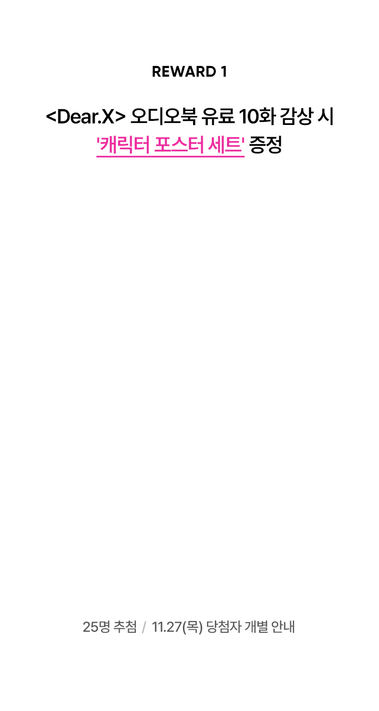 <Dear.X> 오디오북 유료 10화 감상 시 '캐릭터 포스터 세트' 증정 (25명 추첨 / 11.27(목) 당첨자 개별 안내)