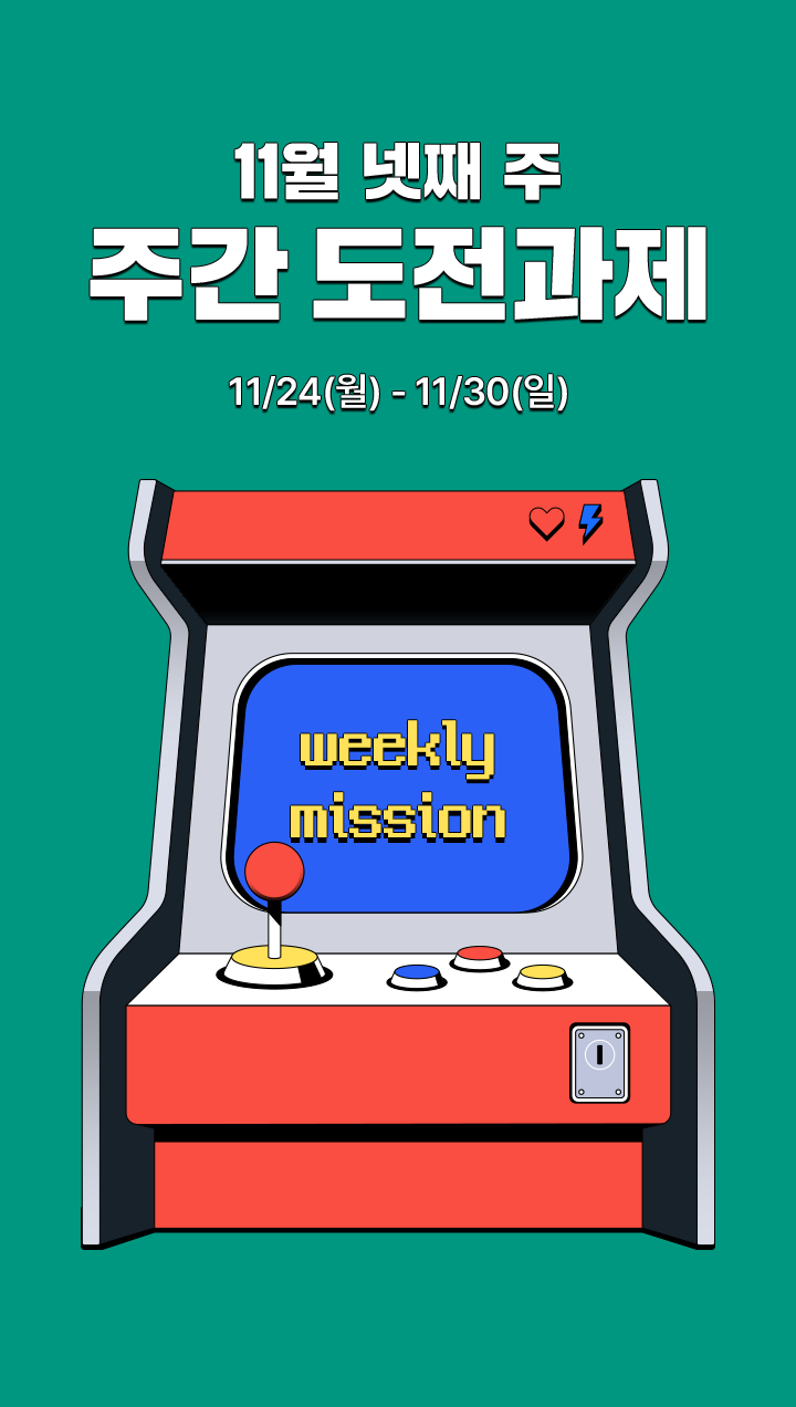 - '11-4 주간 도전과제'는 11/24(월) ~ 11/30(일) 7일간 진행됩니다.