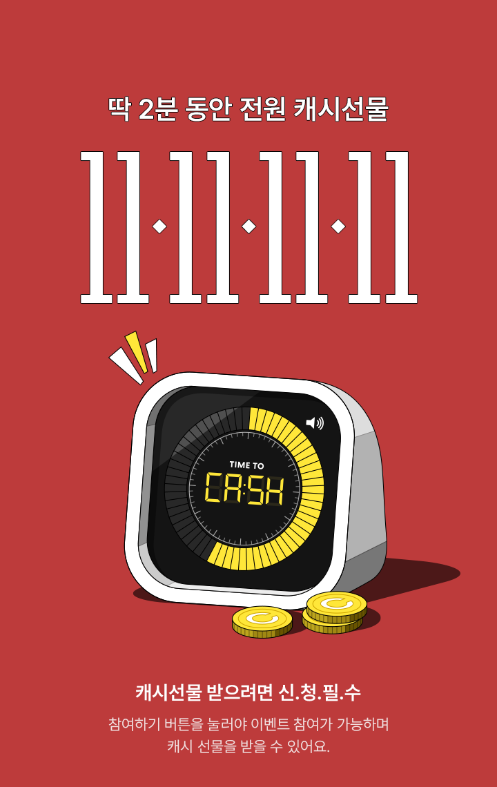 - 이벤트 기간 : 11/11(화) 오전 11시 11분 & 오후 11시 11분, 2분간