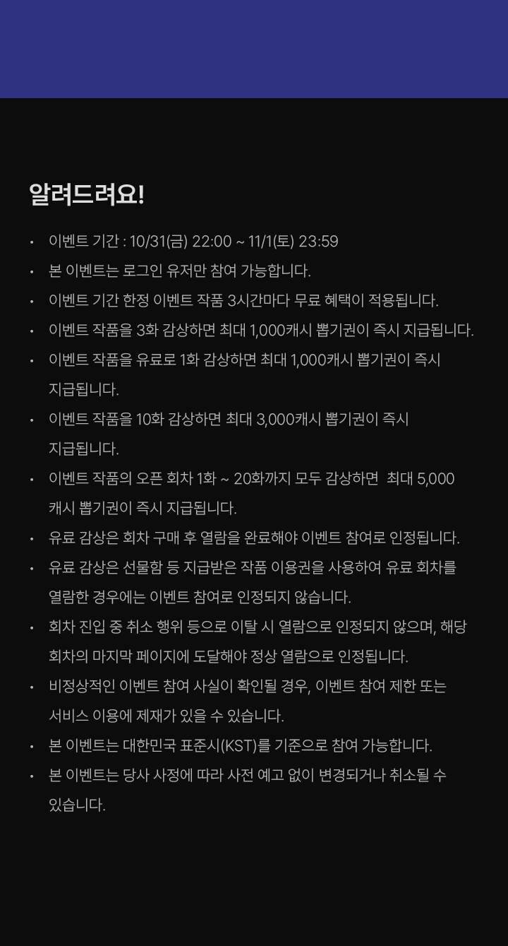 유료 감상은 회차 구매 후 열람을 완료해야 이벤트 참여로 인정됩니다.