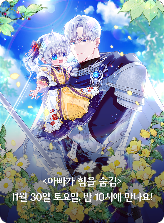 웹툰 <아빠가 힘을 숨김> 알림 신청하면 캐시 선물 (100명 추첨, 12/1 푸시로 지급, 지급 시까지 좋아요 알림 유지 필수)
