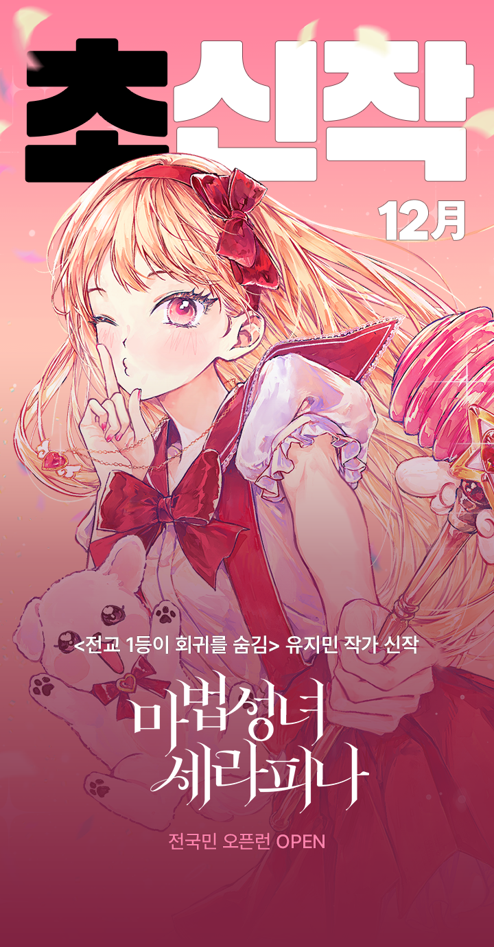 - 웹소설 <마법성녀 세라피나> 유료로 1화 감상하면 최대 1,000캐시 뽑기권을 드립니다. (전원, 감상 즉시 지급)