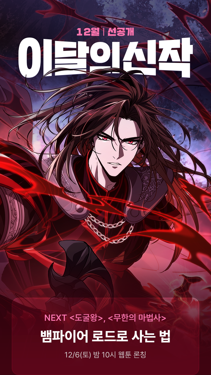 NEXT '도굴왕','무한의 마법사' <뱀파이어 로드로 사는 법> 12/6(토) 밤 10시, 웹툰 론칭