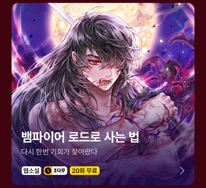 • 웹소설 <뱀파이어 로드로 사는 법> 3시간마다 무료 혜택이 적용됩니다.