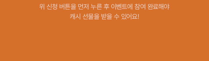 위 신청 버튼을 먼저 누른 후 이벤트에 참여 완료해야 캐시 선물을 받을 수 있어요!