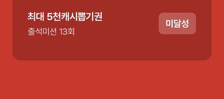์ 13ํ ๋ฌ์ฑํ๋ฉด ์ต๋ 5์ฒ์บ์ ๋ฝ๊ธฐ๊ถ์ ์ง๊ธํฉ๋๋ค. (์ ์, 10/14 ํธ์ ์ง๊ธ)
