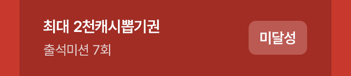 ์ 7ํ ๋ฌ์ฑํ๋ฉด ์ต๋ 2์ฒ์บ์ ๋ฝ๊ธฐ๊ถ์ ์ง๊ธํฉ๋๋ค. (์ ์, 10/14 ํธ์ ์ง๊ธ)