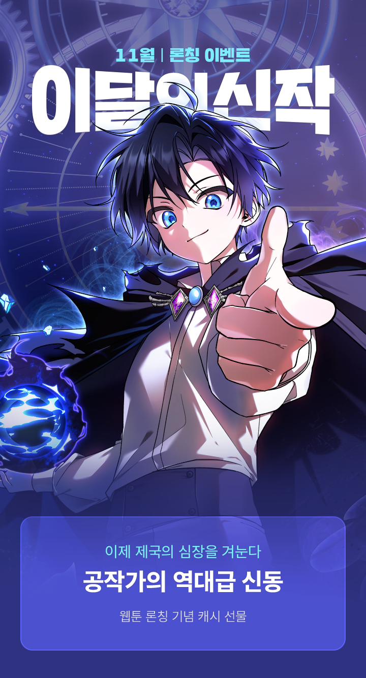 이제 제국의 심장을 겨눈다 <공작가의 역대급 신동> 웹툰 론칭 기념 캐시 선물
