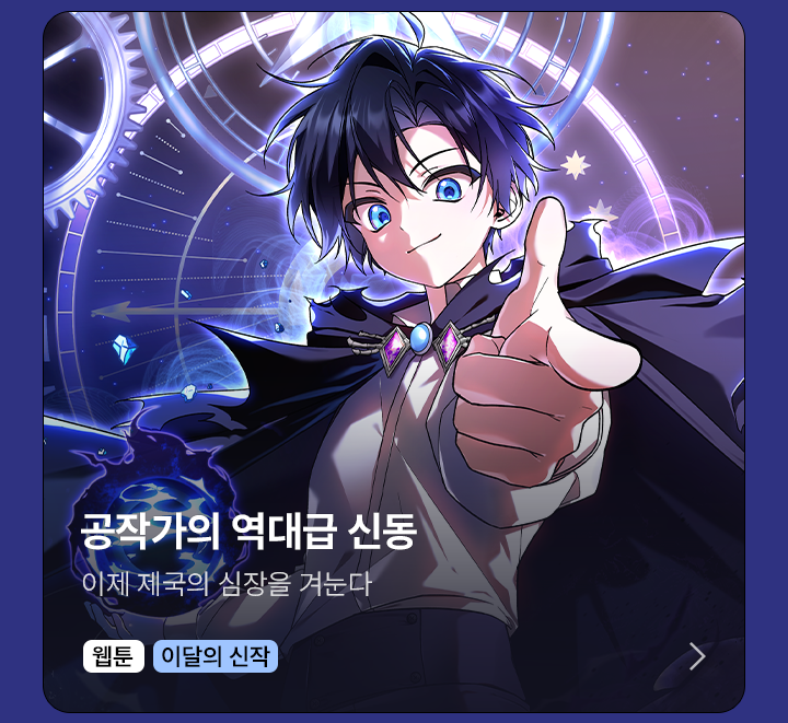 웹툰 <공작가의 역대급 신동> 처음으로 10화 감상하면 최대 2,000캐시 뽑기권이 즉시 지급됩니다.