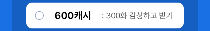 - 600캐시를 선택하신 후, 작품을 300화 이상 감상하면 600캐시를 받을 수 있습니다 (11/4(화) 달성자 개별 푸시 지급)