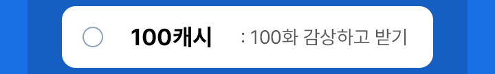 - 100캐시를 선택하신 후, 작품을 100화 이상 감상하면 100캐시를 받을 수 있습니다 (11/4(화) 달성자 개별 푸시 지급)