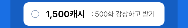 - 1,500캐시를 선택하신 후, 작품을 500화 이상 감상하면 1,500캐시를 받을 수 있습니다 (11/4(화) 달성자 개별 푸시 지급)