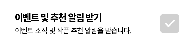 • 카카오페이지 로그인 > 설정 > 알림 수신 > 이벤트 및 추천 알림을 통해 거부할 수 있습니다.