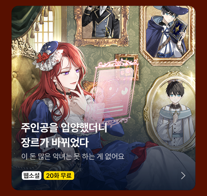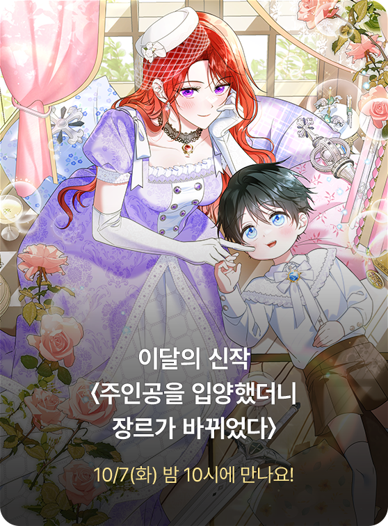 • - 웹소설 <주인공을 입양했더니 장르가 바뀌었다> 유료로 1화 감상하면 최대 1,000캐시 뽑기권이 즉시 지급됩니다.