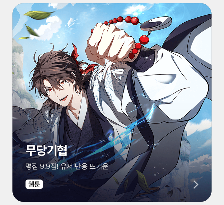 - <무당기협> 웹소설 또는 웹툰을 처음으로 10화 감상하면 최대 1,000캐시 뽑기권이 지급됩니다. (전원, 감상 즉시 지급, 1인 1회 지급)