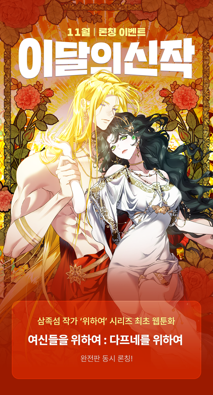 삼족섬 작가 '위하여' 시리즈 최초 웹툰화 <여신들을 위하여 : 다프네를 위하여> 웹툰 론칭 기념 캐시 선물