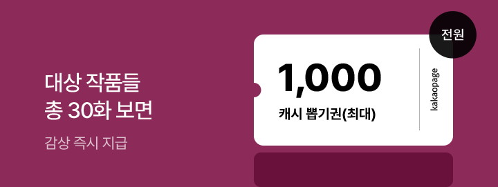 - 이벤트 작품을 총 30화 감상하면 최대 1.000캐시 뽑기권을 즉시 지급합니다. (전원)