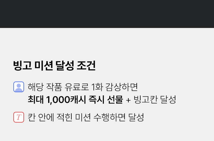 - 파란색 테두리 빙고칸 : 해당 작품 유료로 1화 감상하면 달성